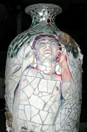 "Yves sortant des Eaux" amphore 1m 55, céramique,miroir, coquillages, pierre