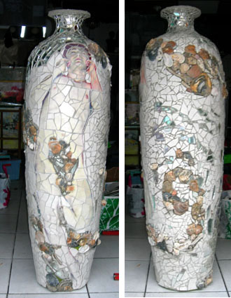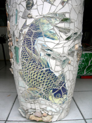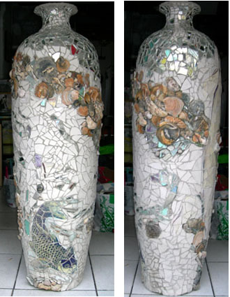 amphore 1m 55, céramique,miroir, coquillages, pierre