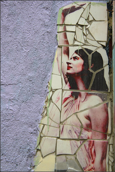 Collage céramique sur un mur de Paris